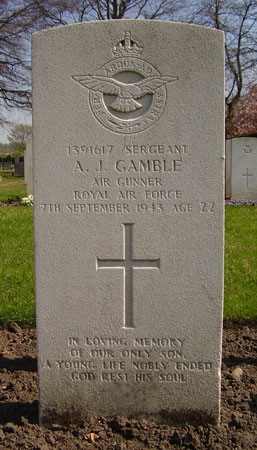 Air Gunner - Sgt Alfred John Gamble RAFVR (1391617), aged 22, of Eltham, London. Buried Selby Cemetery, Yorkshire.