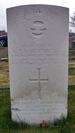 Wireless Operator / Air Gunner - Sgt Edward Leo McCartie RAFVR (1146785), aged 22, of Middlesbrough. Buried Middlesbrough (Thorntree) R.C. Cemetery, Yorkshire.
