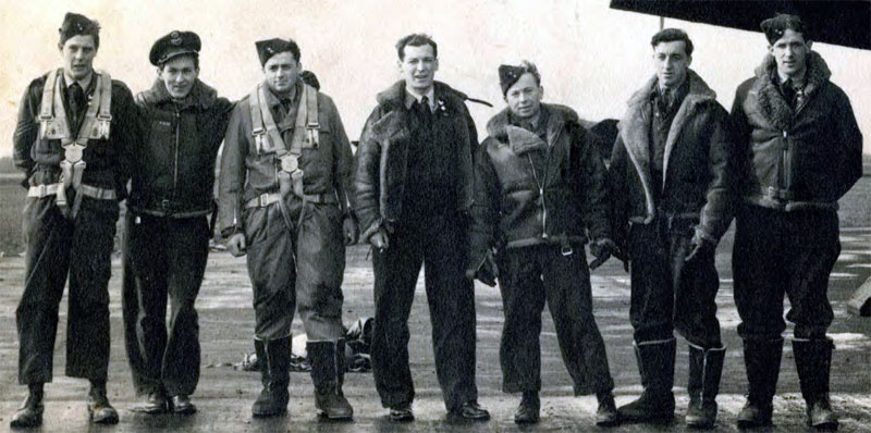 Left to right: Thornhill, Armstrong, Gingras, Stronach, Phillips, Dagenais (or Emery) and Sharples. This crew were later posted to 405 Squadron on 25th January 1944 and became members of the Pathfinder Force in May 1944.