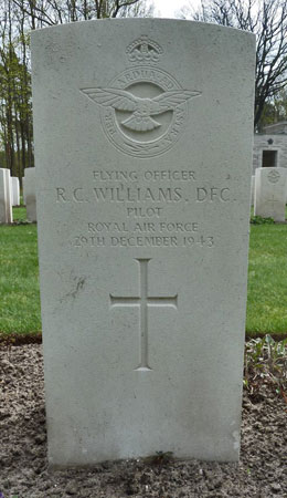 Ronald Williams had trained at 20 EFTS at Yeadon and while there he was the pilot of Tiger Moth T7051 that force landed near Harrogate on 28th August 1941. He later received a commission to the rank of P/O on probation (emergency) on 10th May 1943 and rose to F/O on probation (war subs) on 10th November 1943. His DFC was Gazetted after his death on 18th January 1944 and for service with 35 Squadron.