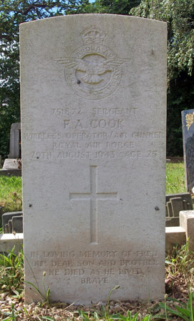 Wireless Operator / Air Gunner - Sgt Fred Arthur Cook RAFVR (851872), aged 25, of Derby. Buried Nottingham Road Cemetery, Derby. Died 29/08/1943.
