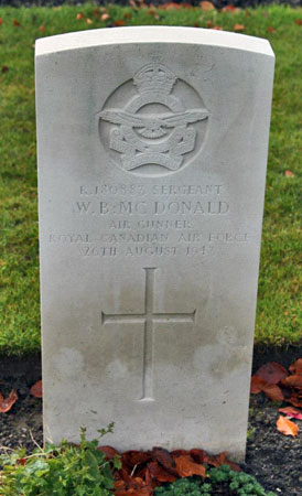 Air Gunner - Sgt Wesley Earl McDonald RCAF (R/180883), aged 24, of Ottawa, Ontario, Canada. Buried Harrogate Stonefall Cemetery, Yorkshire.