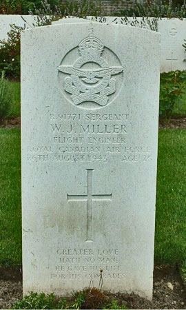 Flight Engineer - Sgt William John Miller RCAF (R/91771), aged 25, of Sanford, Manitoba, Canada. Buried Harrogate Stonefall Cemetery, Yorkshire.