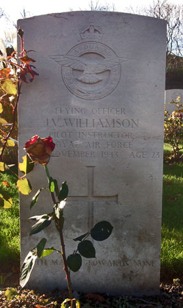 Instructor Pilot - F/O James Vaughan Williamson RAFVR (148444), aged 23, of Edinburgh. Buried Harrogate Stonefall Cemetery, Yorkshire (C.E.6).