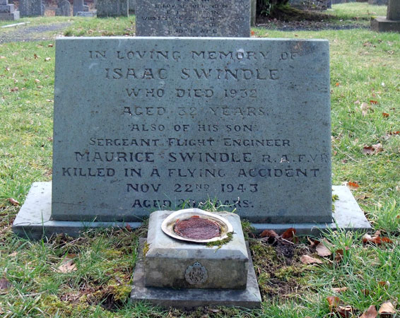 Flight Engineer - Sgt Maurice Noel Graham Swindle RAFVR (1675628), aged 20, of Keswick, Cumbria. Buried Keswick Churchyard, Cumbria.