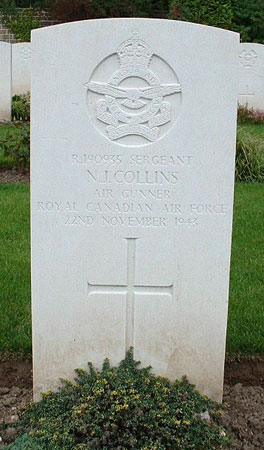 Air Gunner - Sgt Neil James Collins RCAF (R/190935), aged 21, of Toronto, Ontario, Canada. Buried Harrogate Stonefall Cemetery, Yorkshire (C.E.3).