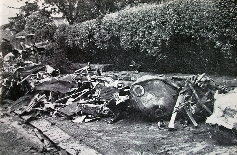 I had previously suggested that some of the aircraft crashed onto the road outside of No.57 Kent Road but this appears to have been an error. It crashed behind the houses, was then brought out and piled up at the front to await collection. The top photograph shows wreckage from Halifax EB191 piled at the side of the road while the bottom two photographs show the area area in 2015.