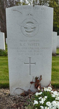 F/Sgt Pendleton, P/O Jarvis and Sgt's White, Pierce and Collins all arrived at 429 Squadron on 5th March 1943 (probably as a complete crew). Their aircraft was hit by flak on Ops to Duisburg on 12th / 13th May 1943 but they returned safely to England (probably to East Moor). All were later posted to 432 Squadron on 14th August 1943 who were based at Skipton on Swale. Their time with this squadron was sadly only brief as on the night of 30th / 31st August 1943 all were flying Wellington JA118 on Ops to Monchengladbach with F/Sgt Jensky RCAF as a second pilot when they failed to return. They were initially buried locally but are now buried in Rheinberg War Cemetery, Germany. My thanks to Graham Sharpe for photographs four of the crew's gravestones, the wrong airman Collins' grave was unfortunately photographed so this airman's gravestone is not shown here.