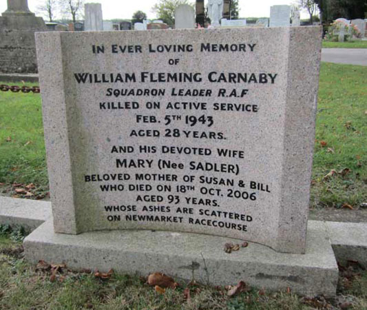 Pilot - S/Ldr William Fleming Carnaby RAF(aux) (90157), aged 28. Buried Newmarket Cemetery, Suffolk.