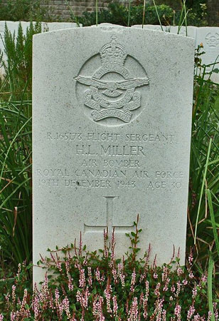 Bomb Aimer - F/Sgt Harry Lewis Miller RCAF (R/165173), aged 30, of Toronto, Ontario, Canada. Buried Harrogate Stonefall Cemetery, Yorkshire (C/G/14).