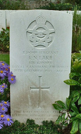Air Gunner - Sgt Kenneth Neville Lake RCAF (R/190919), aged 19, of Toronto, Ontario, Canada. Buried Harrogate Stonefall Cemetery, Yorkshire (C/G/13).