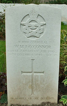 Fitter - Cpl Wilfred Martin Joseph O'Connor RCAF (R/89111), aged 23, of Mattawa, Ontario, Canada. Buried Harrogate Stonefall Cemetery, Yorkshire (C/G/11).