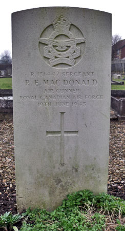 Air Gunner - Sgt Ronald Edwin MacDonald RCAF (R/131442), aged 20. Buried at Pocklington Burial Ground, Yorkshire.