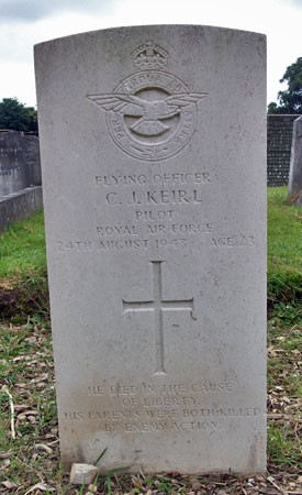 Pilot - F/O Charles James Keirl RAFVR (133026), aged 23, born London. Buried Queensgate Cemetery, Beverley, East Yorkshire.
