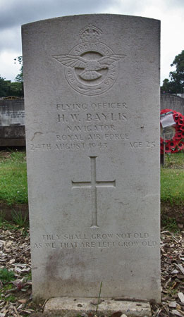 Navigator - F/O Harry William Baylis RAFVR (136528), aged 25, of Buckhurst Hill, Essex. Buried Queensgate Cemetery, Beverley, East Yorkshire.