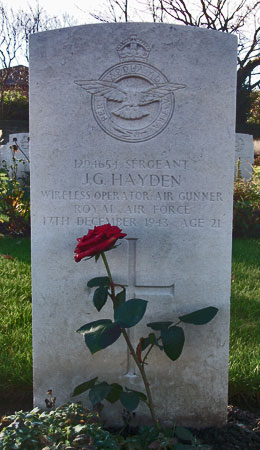 Wireless Operator / Air Gunner - Sgt John Gregory Hayden RAFVR (1294654), aged 21, of Luton, Bedfordshire. Buried Harrogate Stonefell Cemetery, Yorkshire (C/F/18).