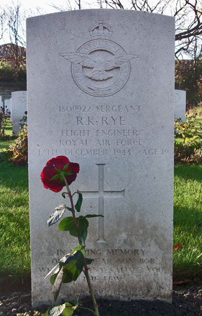 Flight Engineer - Sgt Robert Kenneth Rye RAFVR (1809922), aged 19, of Maidstone, Kent. Buried Harrogate Stonefell Cemetery, Yorkshire (C/F/19).