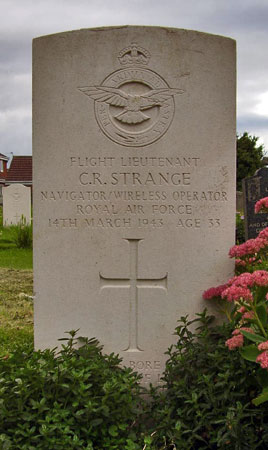Navigator / Wireless Operator - F/Lt Charles Ronald Strange RAFVR (115534) was serving with 219 Squadron when he died on 14th March 1943 as a result of baling out of Beaufighter V8609 over the North Sea after combat with a Do217 off Hartlepool. His body was found by an ASR launch the following day and later buried in Catterick Cemetery. He was thirty three years old and the son of Charles William and Lilian Strange; and husband of Eleanor Isobel Strange, of Chiswick, Middlesex. His aircraft was piloted by S/Ldr James Storrs Morton DFC, who delayed baling out until he was over land, and survived. The aircraft crashed nearby at Hutton Henry near Castle Eden, Co.Durham.