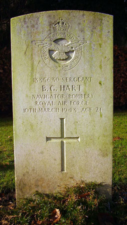 Navigator / Bomber - Sgt Basil Graham Hart RAFVR (1335639), aged 21, of Oxshott, Surrey. Buried Barmby on the Moor Churchyard, Yorkshire.