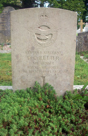 Air Gunner - Sgt Denis Cyril Retter RAFVR (1339894), aged 20, of Whimple. Buried Whimple New Churchyard, Devon.