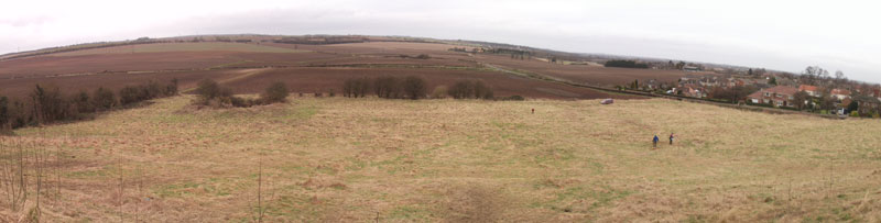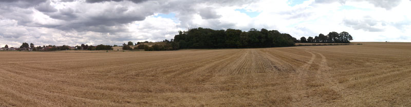 In 2013 Albert Pritchard, Eric Barton, Ken Reast and I attempted to locate this crash site following guidance from the landowner that he believed an aircraft had crashed into the field shown in the photograph above. They gave the long grass a sweep with metal detectors to try and find some sign of aircraft alluminium but found absolutely nothing though possibly due to the grass being very long. The photograph shown above was taken from the church wall. I since learn that this field has some form of protected status with it being the site of a much older settlement so perhaps fitting that we found nothing. The fields immediately north and north-east of this field are much larger fields and while purely speculation, they would have made for a better field to make a forced landing given it was daylight at the time of the incident and the pilot probably had some form of directional control. I would welcome further information to say which field the aircraft crashed into. The photograph below shows the much larger field.