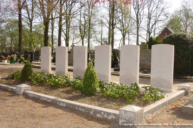 above (and a second pilot) are buried in a collective grave in Bornebroek churchyard, Overrijssel, Holland. A photograph of their graves are shown below.