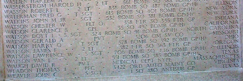 Passenger - Cpl Clarence Steele Watson USAAF (39406449), of California, USA. No Further details. Missing, commemorated at Cambridge Madingley Cemetery. OR buried West Point Cemetery, West Point, California, USA.