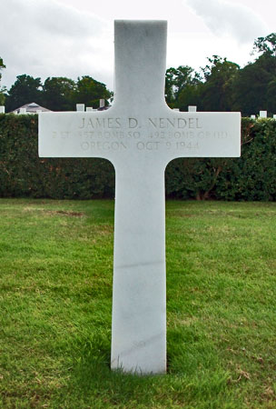 Co-Pilot - 2nd Lt James Delroy Nendel USAAF (O-553334). Of Oregan, USA. Buried Cambridge Madingley Cemetery (E/1/80).
