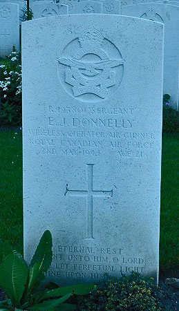 Wireless Operator / Air Gunner - Sgt Edward John Donnelly RCAF (R/193801), aged 21, of Toronto, Ontario, Canada. Buried Harrogate Stonefall Cemetery, Yorkshire (B/B/13).
