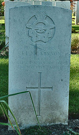 Pilot - F/O John Lockwood McKinnon RCAF (J/27633), aged 20, of Port Arthur, Ontario, Canada. Buried Harrogate Stonefall Cemetery, Yorkshire (B/B/16).