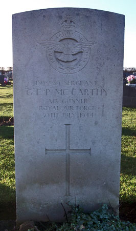 Air Gunner - Sgt George Francis Peter McCarthy RAFVR (1893589), aged 19. Buried Hatfield Woodhouse Cemetery, Yorkshire.