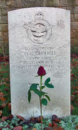 Navigator - F/O Denis Graham Clough RAFVR (162049), aged 21, of Upper Norwood, Surrey. Buried Harrogate Stonefall Cemetery, Yorkshire (E/F/4).