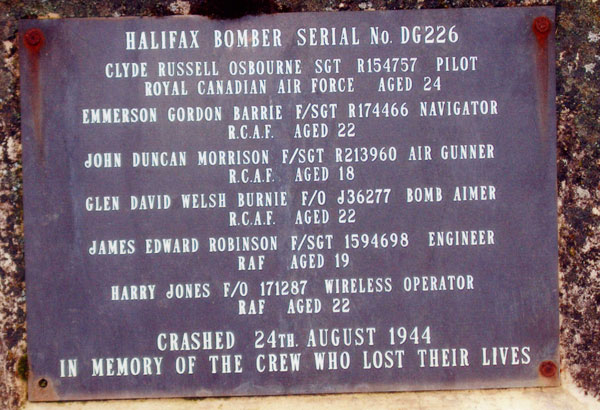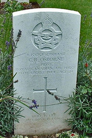 Pilot - Sgt Clyde Roswell Osborne RCAF (R/154757), aged 24, of St.Martins, New Brunswick, Canada. Buried Harrogate Stonefall Cemetery, Yorkshire (E/C/5).