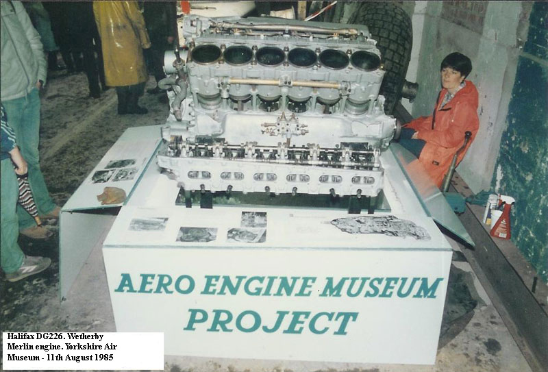These two photographs show the starboard inner engine of Halifax DG226 (modelled by Lesley Sharpe to add scale), this was initially retained by the landowner and was cleaned and displayed to museum standard by Robin Goodman and Mark Lewis. It was later donated to the Yorkshire Air Museum in 1985 and is still on display there.