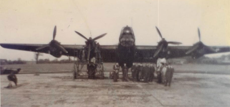 At 14.29hrs on 24th August 1944 this 1652 Heavy Conversion Unit aircraft took off from Marston Moor for the crew to undertake a training flight. The aircraft climbed away as normal to around 1,000 feet but shortly afterwards the port outer engine failed and was seen on fire. It was felt that the pilot had been unable to feather the propeller on the damaged engine, the airspeed dropped and the aircraft stalled. At 14.35hrs the aircraft turned onto it's back and dived into the ground into a field near Wetherby Golf Course and all on board were killed. Following the crash it took some time to recover the bodies of the crew. The damaged engine was also recovered from the site and received a detailed examination, it was found that the A-block con-rod was broken and a piston inside the engine was missing (probably broken through the engine casing rather than missing when constructed). The time and effort it took to recover the crew and the damaged engine almost certainly resulted in the other three engines being left where they fell.