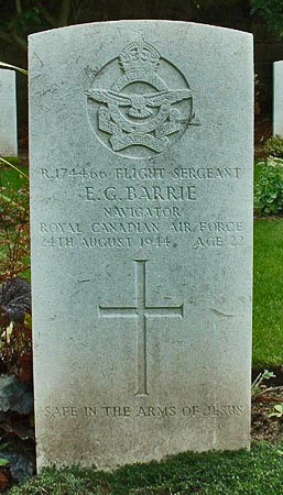 Emerson Barrie was born on 30th August 1922 at Montreal, Quebec, Canada and was the son of William and Gertrude Ann (nee Pain) Barrie. He had just finished at high school when he enlisted for RCAF service on 7th July 1942 in Montral and after training in Canada he was awarded his navigator's flying badge on 1st October 1943. He left for service in the UK in early 1944 and trained at 3 (O)AFU and 20 OTU before posting to 1652 HCU around the start of August 1944. His brother William Fraser Clinton Barrie R/164541 served in the RCAF.