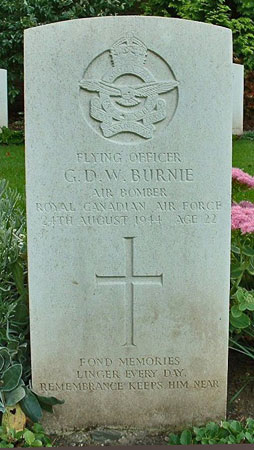 Bomb Aimer - F/O Glenn David Welsh Burnie RCAF (J/63277), aged 22, of Winnipeg, Manitoba, Canada. Buried Harrogate Stonefall Cemetery, Yorkshire (E/C/6).