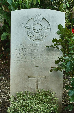 Wireless Operator / Air Gunner - F/Sgt Joseph Alphonse Clement Duhamel RCAF (R/194025), aged 21, of St.Hyacinthe, Quebec, Canada. Buried Harrogate Stonefall Cemetery, Yorkshire (E/E/9).