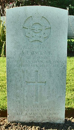 Air Gunner - P/O Andrew Ian Sinclair RCAF (J/38263), aged 20, of Goshen, Nova Scotia, Canada. Buried Harrogate Stonefall Cemetery, Yorkshire (F/B/3).