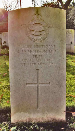 Instructor Pilot - F/Lt Alfred John Shirley Hodson DFC RAFVR (130663), aged 30, of Maidenhead, Berkshire. Buried Harrogate Stonefall Cemetery, Yorkshire (C/K/19).
