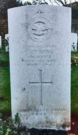 Bomb Aimer - Sgt Charles Carr RAFVR (659081), aged 32, of Govan, Glasgow. Buried Harrogate Stonefall Cemetery, Yorkshire (F/A/3).