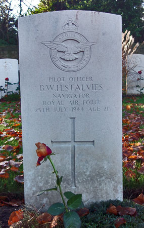 Navigator - P/O Bryan Wallis Henshall Stalvies RAFVR (172642), aged 21, of Nottingham. Buried Harrogate Stonefall Cemetery, Yorkshire (B/K/13).