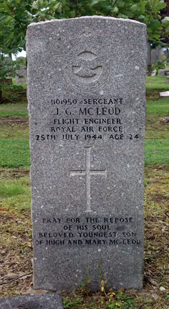 Flight Engineer - Sgt John Gerard McLeod RAFVR (1101950), aged 24, of Paisley. Buried Hawkhead Cemetery, Paisley, Renfrewshire.