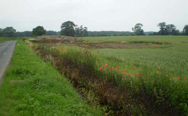 I visited the area of the crash in June 2007 following information from historian Ken Reast, Ken had sought permission from the landowner and he, Eric Barton and Albert Pritchard located small fragments on the site in September 2004 in the ground under what was then a muck heap! The muck heap had then moved a few yards up the field when this photograph was taken a year or so later.