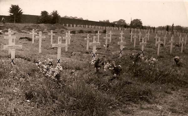 From time to time I receive a photograph which depicts more than just information purtaining to just one incident and loss and more than which the photograph was intended to show. The above photograph was kindly sent to Mr Leslie Green by Wendell Watkins's sister and shows the graves of the crew who were buried at Harrogate Stonefall Cemetery, probably a few weeks after they were buried. Not only does it show these graves but many of the 1943 and early 1944 losses at the far side of the War Graves plot, a number of graves-in-waiting and an area which by the end of the War would be full of men who gave their lives. The photograph was actually taken by Mrs Mary Martin, Aunt to Kenneth Holden and sent to the Watkins family in the USA.