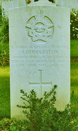 Wireless Operator / Air Gunner - WO1 John Huddleston RCAF (R/106580), aged 20, of Grants Pass, Oregon, U.S.A. Buried Harrogate Stonefall Cemetery, Yorkshire (B/A/8).