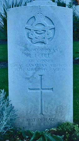Air Gunner - Sgt Lloyd John Cull RCAF (R/200097), aged 18, of Falconbridge, Ontario, Canada. Buried Harrogate Stonefall Cemetery, Yorkshire (B/A/5).