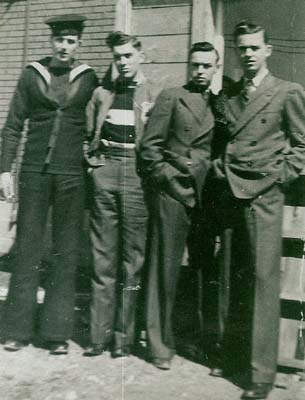 Lloyd Cull was born on 22nd October 1924 in Sturgeon Falls, Ontario, Canada and was a son of Christopher John and Lillian Maud (nee Standing) Cull. The family later moved to Falconbridge, Ontario. He was one of four Cull brothers to serve in the War, pictured above left to right are Arnold, George, Lloyd and Cecil Cull and also Lloyd Cull's gravestone at Harrogate. All four brothers had infact tried to enlist for Navy service but Lloyd and George were too young at the time and were refused so they joined the RCAF instead. Lloyd Cull and the older brother Arnold both tried to enlist on Christmas Eve 1941 but only Arnold was accepted, Lloyd was too young so was eventually successful in enlisting into the RCAF 24th November 1942 at North Bay. After basic training he was awarded his Air Gunner's badge on 3rd September 1943. He arrived in England the following month and over the coming months he trained at 81 OTU and 27 OTU before posting to 1664 HCU in late February 1944. Further research by Keith Whitfield revealed that Lloyd Cull was a good swimmer and especially good at hockey. He played midget, juvenile and junior hockey at Falconbridge and was a star in some of the midget NHL cup games. In a press report in November 2007 the Sudbury Star, Canada contained a report in which Lloyd's brother Arnold Cull was interviewed and states that "Lloyd was the better one, he played with the Copper Cliff Redmen, he played junior hockey in 1942 and was a member of the 1940-1941 Rothschild winners, along with his brother George." He also played the tuba in the Falconbridge Band. Arnold Cull stated that Lloyd wasn't as good in school as George and didn't finish high school. Lloyd was working at Falconbridge Mines when he enlisted.
