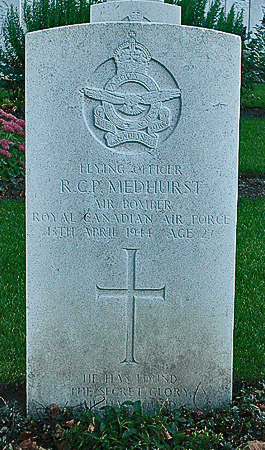 Bomb Aimer - F/O Reginald Chester Pelham Medhurst RCAF (J/23727), aged 27, of Toronto, Ontario, Canada. Buried Harrogate Stonefall Cemetery, Yorkshire (B/A/2).
