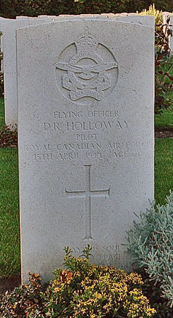 Pilot - F/O Donaldson Rendal Holloway RCAF (J/25803), aged 21, of Ottawa, Ontario, Canada. Died of injuries. Buried Harrogate Stonefall Cemetery, Yorkshire (B/A/12).
